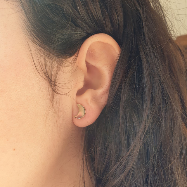 Puces délicates en forme de lune, aux textures variées, pour un style subtil et lumineux.